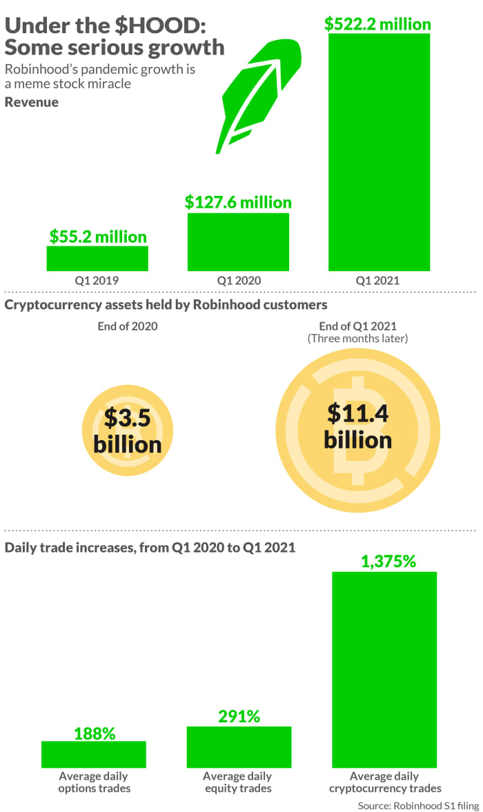 Founded in 2013, robinhood quickly became one of the most utilized trading platforms, with over 20 billion in aum as of late 2020. Gain insight into investors and lead partners and make more informed decisions. Robinhood estimates the ipo will raise about $2 billion for the company if the ipo prices at the midpoint of the range, $40. Robinhood's trading debut marks a referendum on the company's gamification niche on wall street, or on the platform economy, or initial public offerings (ipos. Robinhood disclosed on july 1 that it's rapidly expanding its business and it made a profit in 2020. Robinhood shares crash following ipo. Popular trading platform robinhood has delayed its ipo plans, which were originally scheduled for later this month after its prospectus became the subject of regulatory. It currently has a total of 17.7 million monthly active users and. Robinhood publicly filed for its ipo earlier this month, revealing that it was profitable last year, with a net income of $7.45 million on net revenue of $959 million. June 25, 2021 8:20 am. It expects revenue of $546 million to $574 million, more than double the $244 million in 2020's. Robinhood has filed for an ipo amid its mixture of surging growth and deep problems with customers and regulators. July 29, 2021, 5:15 am · 2 min read.